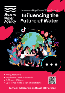 Join us at our annual Innovators High Desert Water Summit! This annual event brings together middle and high school students from across the Mojave Water Agency service area for a day filled with learning, keynote speakers, and activities. Did we mention it’s FREE?! Teachers can register your class at the link below!